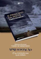 A Biblioteca Municipal de Torre de Moncorvo recebe no próximo dia 27 de Fevereiro, pelas 15h00, a apresentação do livro “O Princípio da Noite” de Tiago Patrício. A obra será apresentada por Álvaro Teixeira Leonardo.